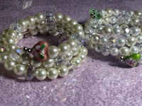 This unique piece is compiled of wood, ceramics, real crystals and authentic black pearls, & rhinestones.
